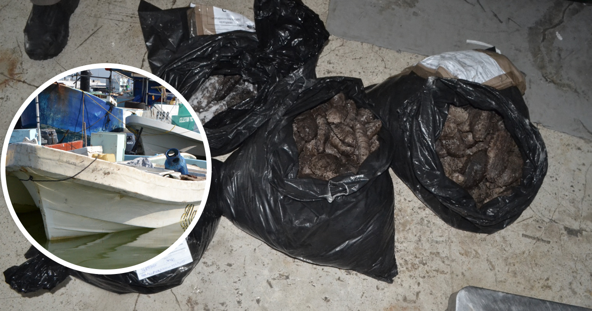 Las autoridades aseguraron 170 kilogramos 900 gramos de pepino de mar. También decomisaron una embarcación, tres tanques de gas, una báscula y tres fogones. La especie identificada fue Isostochopus Badionotus, en veda permanente.