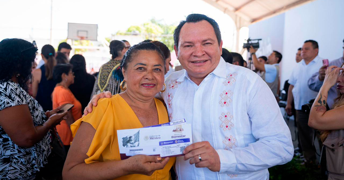 Progreso, Yucatán, 13 de octubre de 2025.- El Gobernador Joaquín Díaz Mena encabezó la entrega de tarjetas del programa federal Pensión para Mujeres Bienestar en Progreso. El apoyo bimestral de tres mil pesos se dirige a mujeres de 60 a 64 años. El objetivo es reconocer su contribución a las familias y a la sociedad.