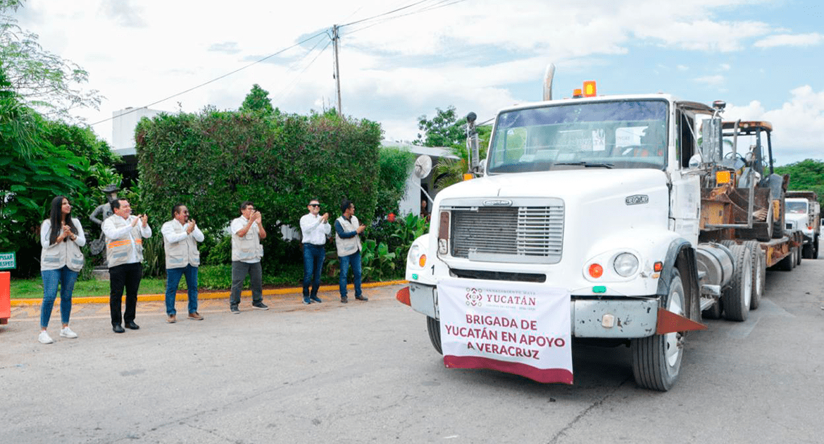 Mérida, Yucatán, 16 de octubre de 2025.- El Gobierno de Yucatán envió una brigada de 57 personas y maquinaria pesada a Poza Rica, Veracruz. El contingente participará en labores de limpieza y desazolve en zonas afectadas por inundaciones. La acción busca apoyar a familias damnificadas del centro del país.