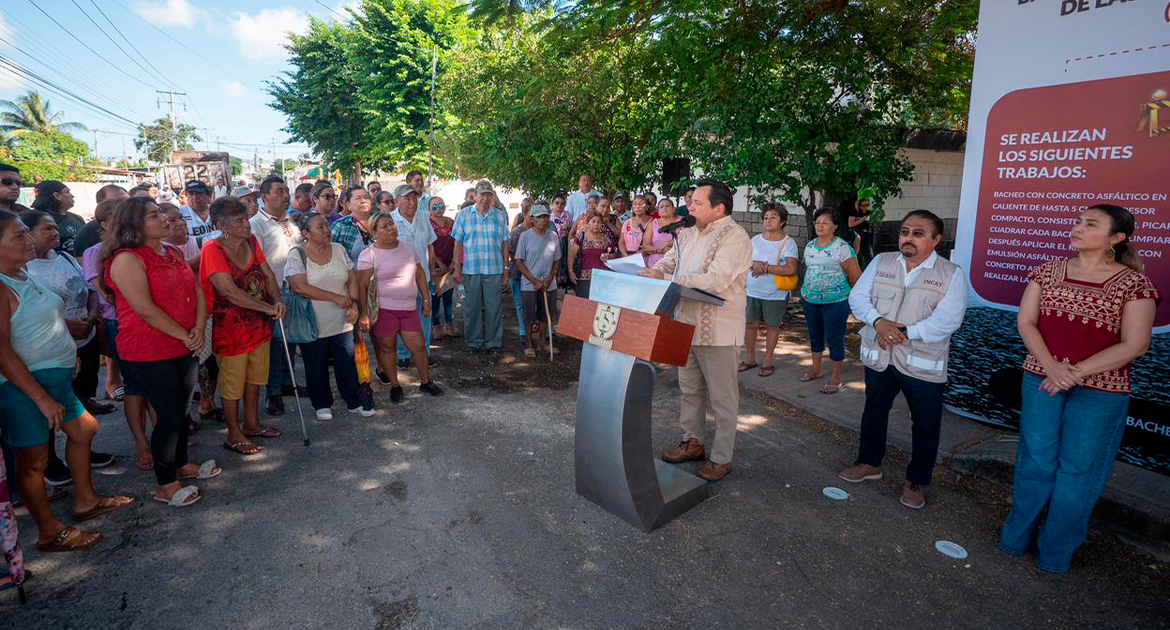 El programa incluye bacheo y repavimentación en mil 135 calles de la capital. Una inversión adicional de 10.8 millones de pesos se aplicará en San José Tecoh, Emiliano Zapata Sur, El Roble Agrícola y Sambulá.