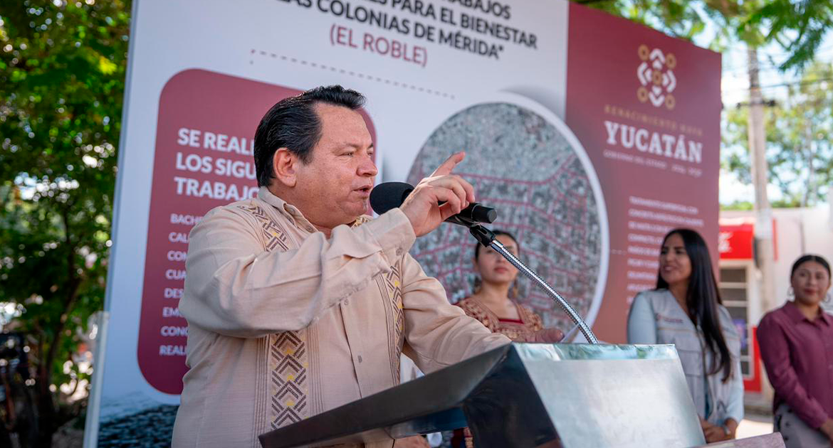 Mérida, Yucatán, 20 de octubre de 2025.- El gobierno de Yucatán destina 47.7 millones de pesos para mejorar calles en colonias del sur de Mérida. El Gobernador Joaquín Díaz Mena supervisó trabajos en la colonia El Roble Agrícola, donde se intervendrán 112 calles.