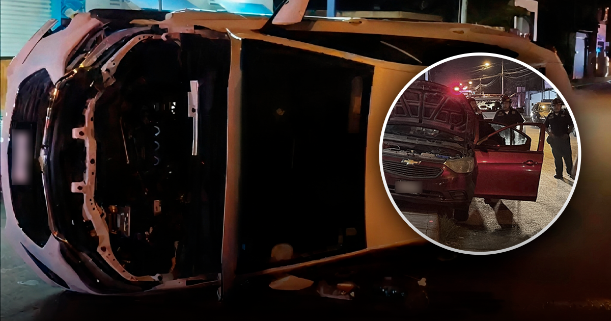 Mérida, Yucatán, 31 de octubre de 2025.- Una conductora en supuesto estado etílico chocó contra un vehículo estacionado y volcó en la colonia Cinco Colonias. El incidente ocurrió en el cruce de la calle 50 con la 129. Dentro del auto estacionado se encontraba una familia que esperaba un pedido de comida.