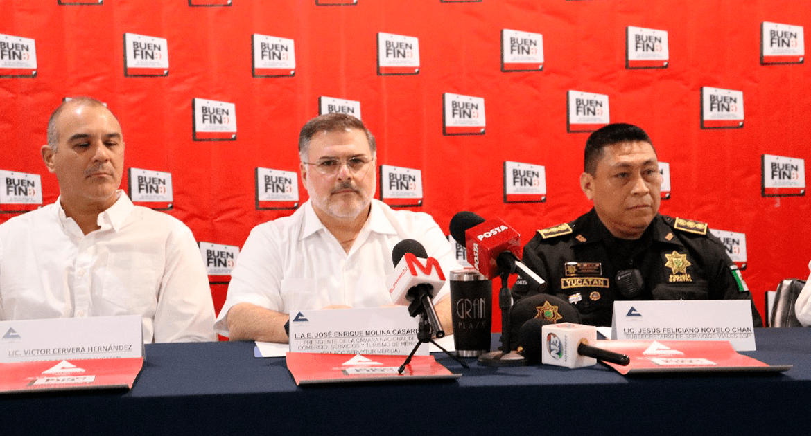 Mérida, Yucatán, 10 de noviembre de 2025.- Autoridades e instituciones coordinarán operativos de seguridad para El Buen Fin, que se realizará del 13 al 17 de noviembre en Yucatán. José Enrique Molina Casares, presidente de la Canaco Servytur Mérida, confirmó la colaboración entre corporaciones policiacas, Profeco, Condusef y el SAT.