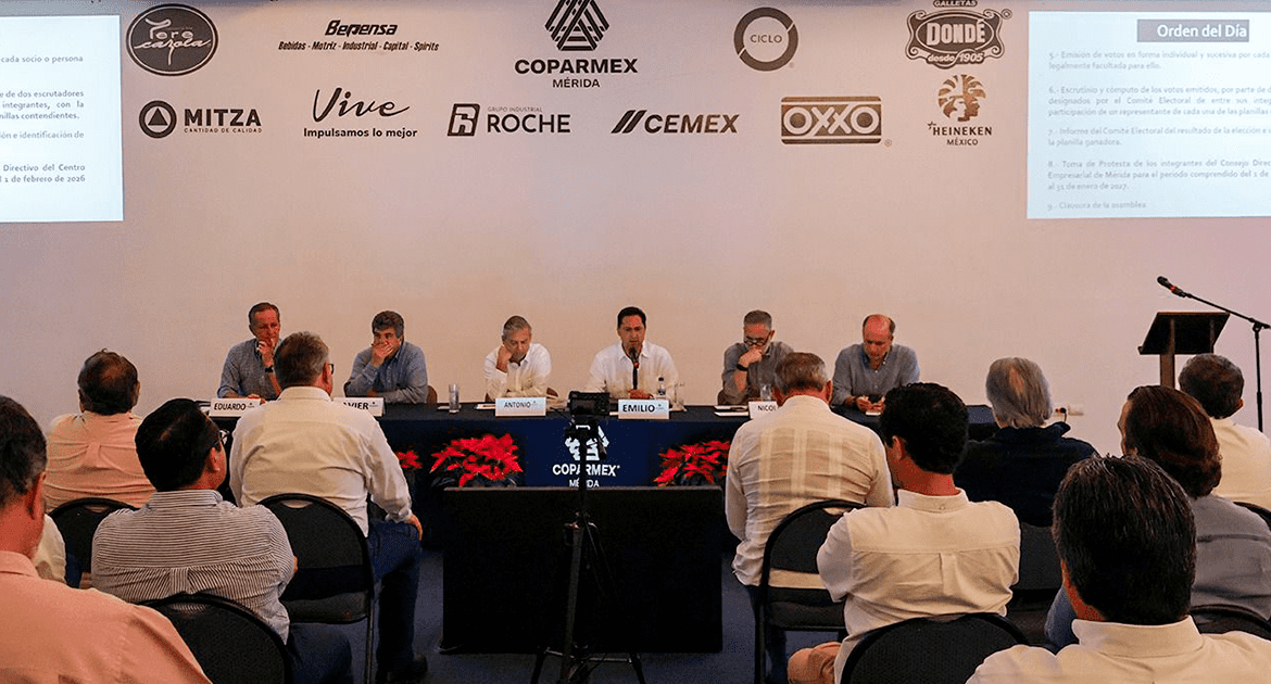 Mérida, Yucatán, 9 de diciembre de 2025.- La Confederación Patronal de la República Mexicana (Coparmex) Mérida eligió a su nuevo presidente y consejo directivo para el período 2026-2027. En una asamblea celebrada anoche, el Contador Público David Reyes Aguiar fue electo por votación unánime de los asociados.