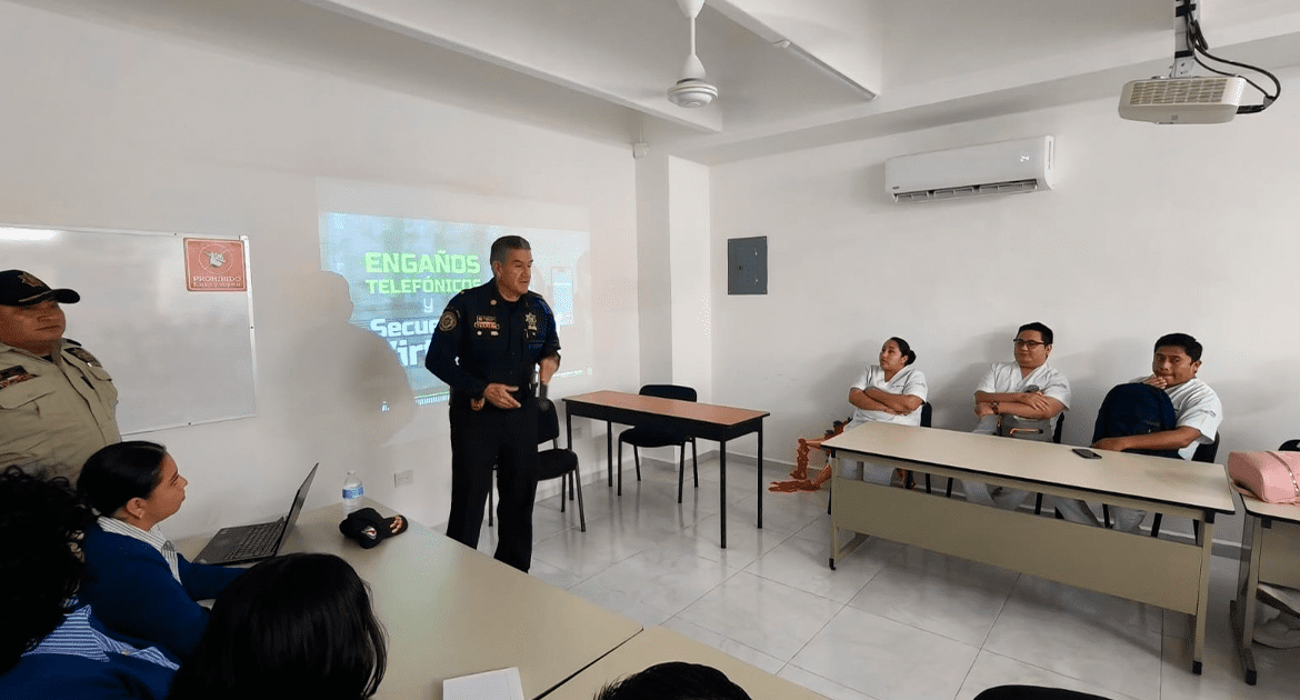 Mérida, Yucatán, 11 de diciembre de 2025.- La Secretaría de Seguridad Pública impartió pláticas de prevención sobre extorsiones, fraudes y engaños telefónicos en el municipio de Tecoh y en Mérida. La Unidad Antiextorsión de la SSP realizó las sesiones con el objetivo de fortalecer el autocuidado de la ciudadanía.