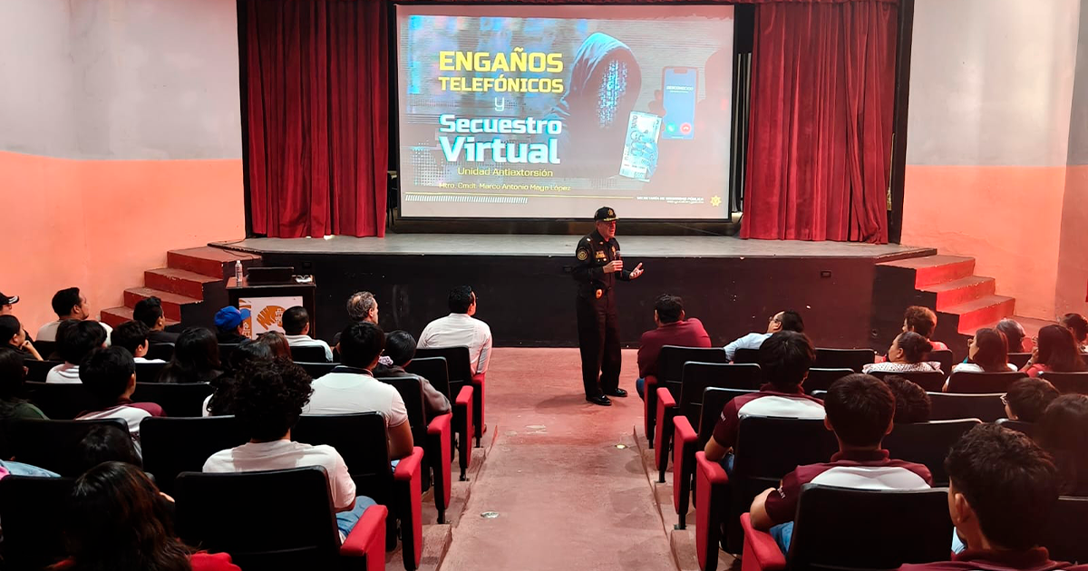 Mérida, Yucatán, 11 de diciembre de 2025.- La Secretaría de Seguridad Pública impartió pláticas de prevención sobre extorsiones, fraudes y engaños telefónicos en el municipio de Tecoh y en Mérida. La Unidad Antiextorsión de la SSP realizó las sesiones con el objetivo de fortalecer el autocuidado de la ciudadanía.