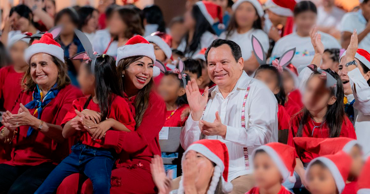 Mérida, Yucatán, 19 de diciembre de 2025.- El Gobernador Joaquín Díaz Mena y la Presidenta Honoraria del DIF Yucatán Wendy Méndez Naal celebraron una posada navideña con niños y adolescentes de Casa Otoch. El evento se realizó en un ambiente de alegría para los menores que se encuentran bajo tutela del Estado.
