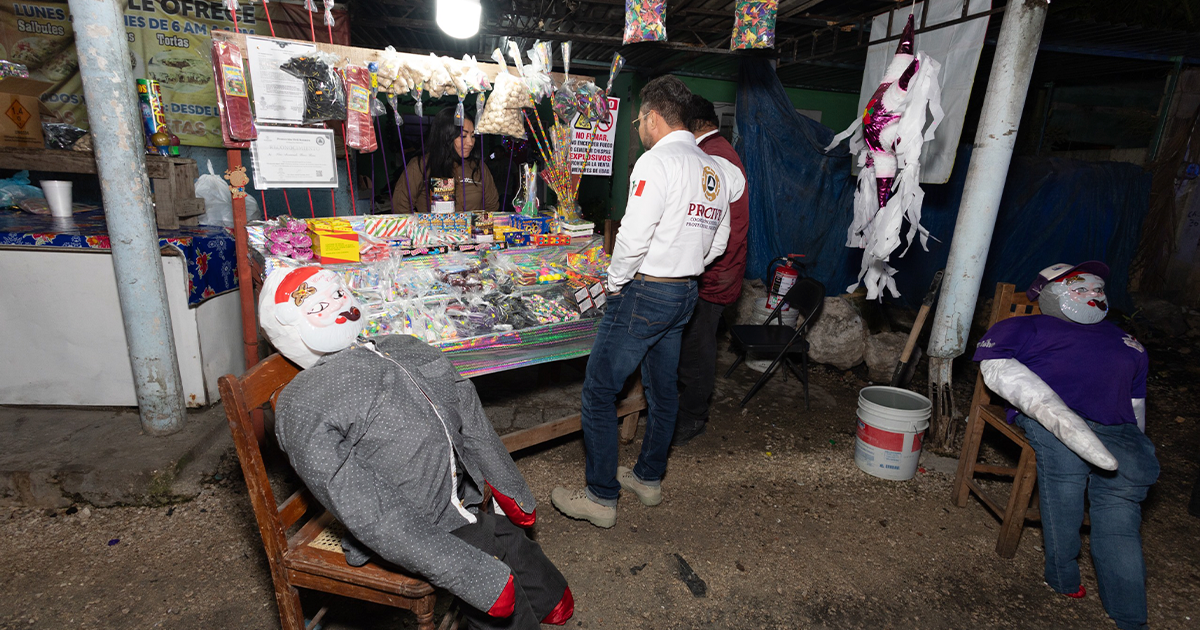 Durante esos días, Procivy implementa un operativo especial con el Ejército Mexicano, la Guardia Nacional y policías municipales. El objetivo es verificar que los puestos cumplan medidas de seguridad como contar con cubetas de agua, arena y extintores, y no vender a menores de edad.