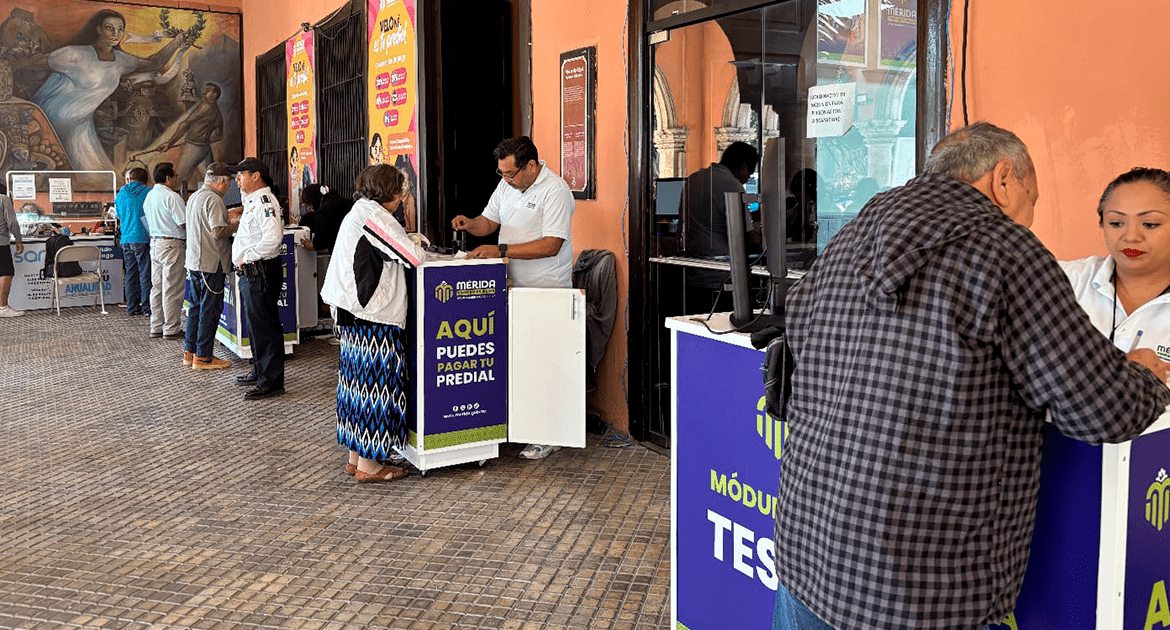 Mérida, Yucatán, 2 de enero de 2026.- Meridanos acudieron desde temprano a pagar el impuesto predial en las cajas del Palacio Municipal. El pago presencial se realizó de forma ordenada en el primer día hábil del año.