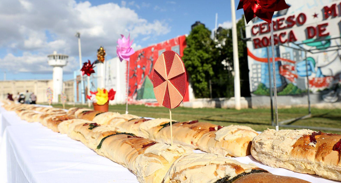 Mérida, Yucatán, 5 de enero de 2026.- Reclusos del Cereso de Mérida elaboraron una Rosca de Reyes de 250 metros de longitud. La rosca incluyó 2 mil 100 muñequitos y se preparó con más de mil 300 kilos de harina.