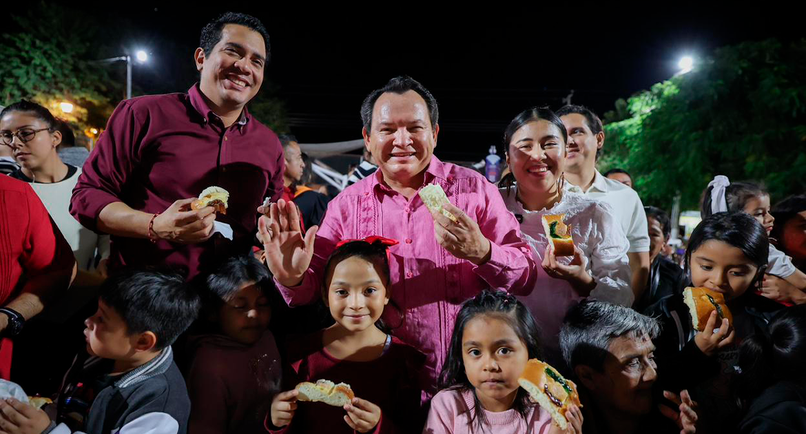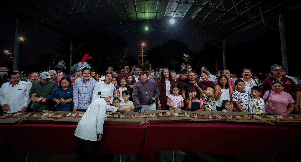 Mérida, Yucatán, 5 de enero de 2026.- El Gobernador Joaquín Díaz Mena anunció la construcción de un domo en el parque Plan de Ayala Sur II de Mérida. El anuncio se realizó durante el tradicional corte de la Rosca de Reyes con vecinos de esa colonia.
