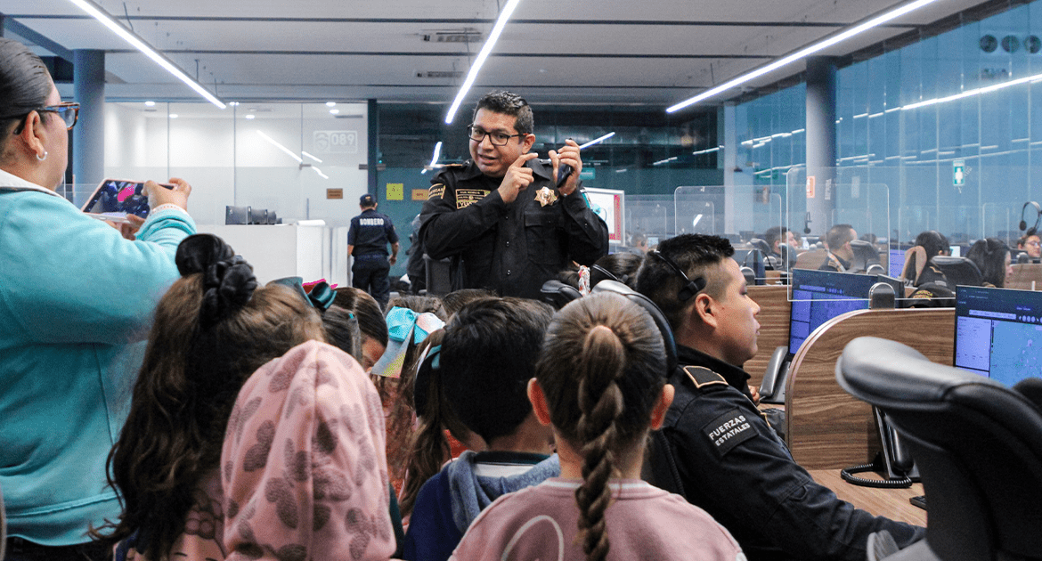 El recorrido inicia en el Centro de Control, Comando, Comunicación, Cómputo, Coordinación e Inteligencia (C5i). En este espacio se atienden los números de emergencia 9-1-1 y de denuncia anónima 089, y se monitorean más de 6,700 cámaras de videovigilancia en todo el estado.