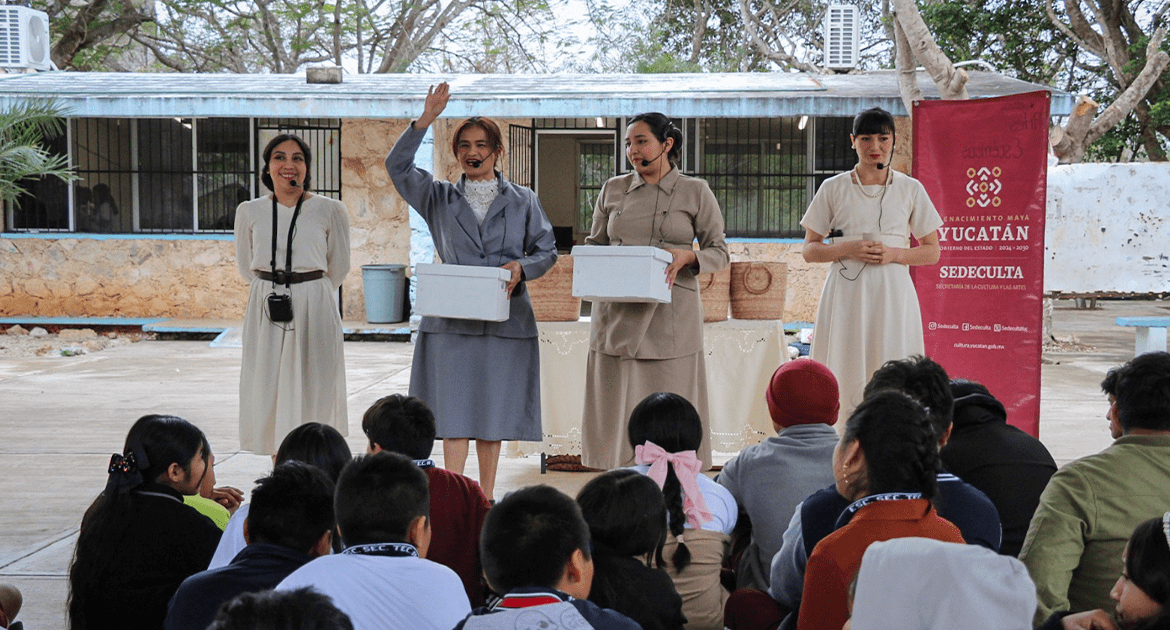 Kinchil, Yucatán, 28 de enero de 2026.- La Secretaría de la Cultura y las Artes de Yucatán presentó la obra «Bravas Muchachas: la historia también es nuestra». El montaje reflexiona sobre el papel de las mujeres en la vida pública a través de las historias de cuatro pioneras yucatecas.