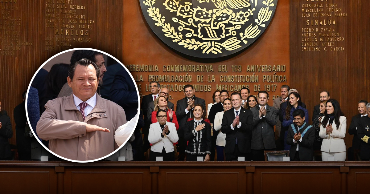 Querétaro, 5 de febrero de 2026.- El Gobernador Joaquín Díaz Mena acompañó a la Presidenta Claudia Sheinbaum en la ceremonia por el 109 aniversario de la Constitución. El acto se realizó en el emblemático Teatro de la República. Durante el evento, el mandatario estatal resaltó la importancia del documento como pilar fundamental de la democracia mexicana.