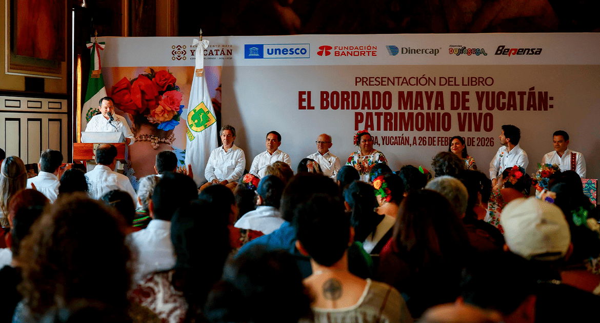 Mérida, Yucatán, 27 de febrero de 2026.- En el Salón de la Historia del Palacio de Gobierno, entre muros que atestiguan la memoria, el eco de las voces mayas resonó con puntadas invisibles. La presentación del libro “El bordado maya de Yucatán: patrimonio vivo” no fue solo un acto protocolario; fue la confirmación de que cada hilo en manos de las bordadoras es historia, identidad y futuro.
