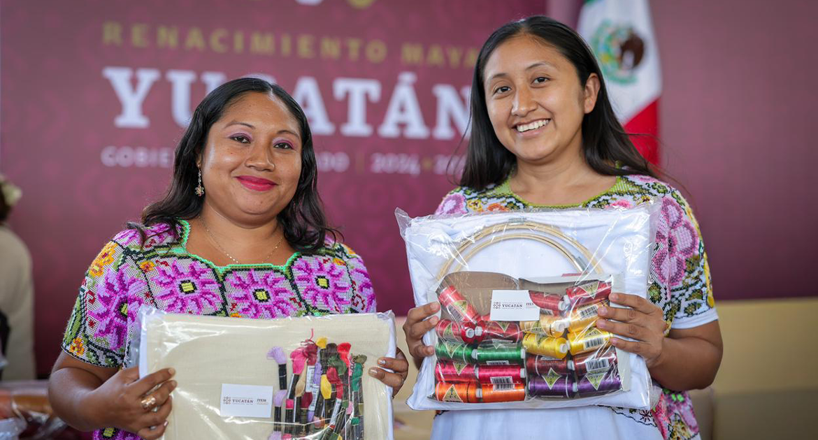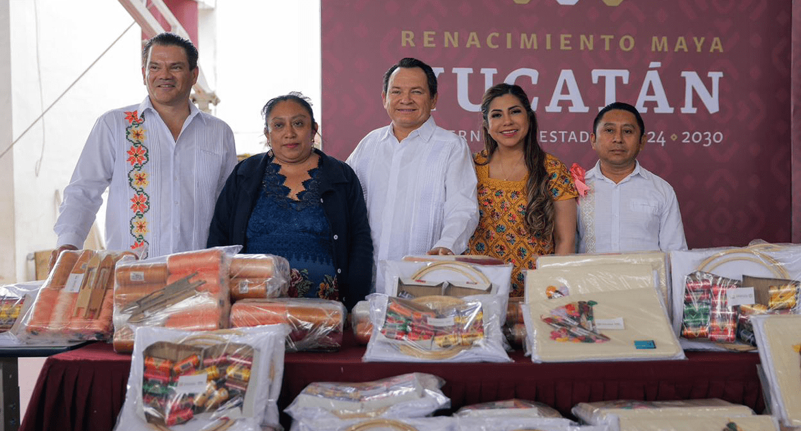 «Hoy beneficiamos a artesanas y artesanos de 41 municipios con apoyos para bordado a mano, bordado a máquina, urdido de hamacas, fibras de henequén, herramientas para madera y fibras duras», explicó el mandatario. Estos insumos fortalecen la producción y mejoran la comercialización de las piezas artesanales.