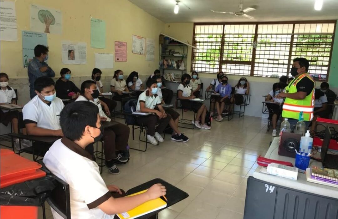 Umán, Yucatán, 4 de abril de 2022.- El Departamento de Prevención al Delito de la Dirección de Seguridad Pública Municipal ha llevado distintos programas a las escuelas de nivel básico y medio superior con el único objetivo de prevenir actos delictivos dentro o cerca de las instalaciones educativas.